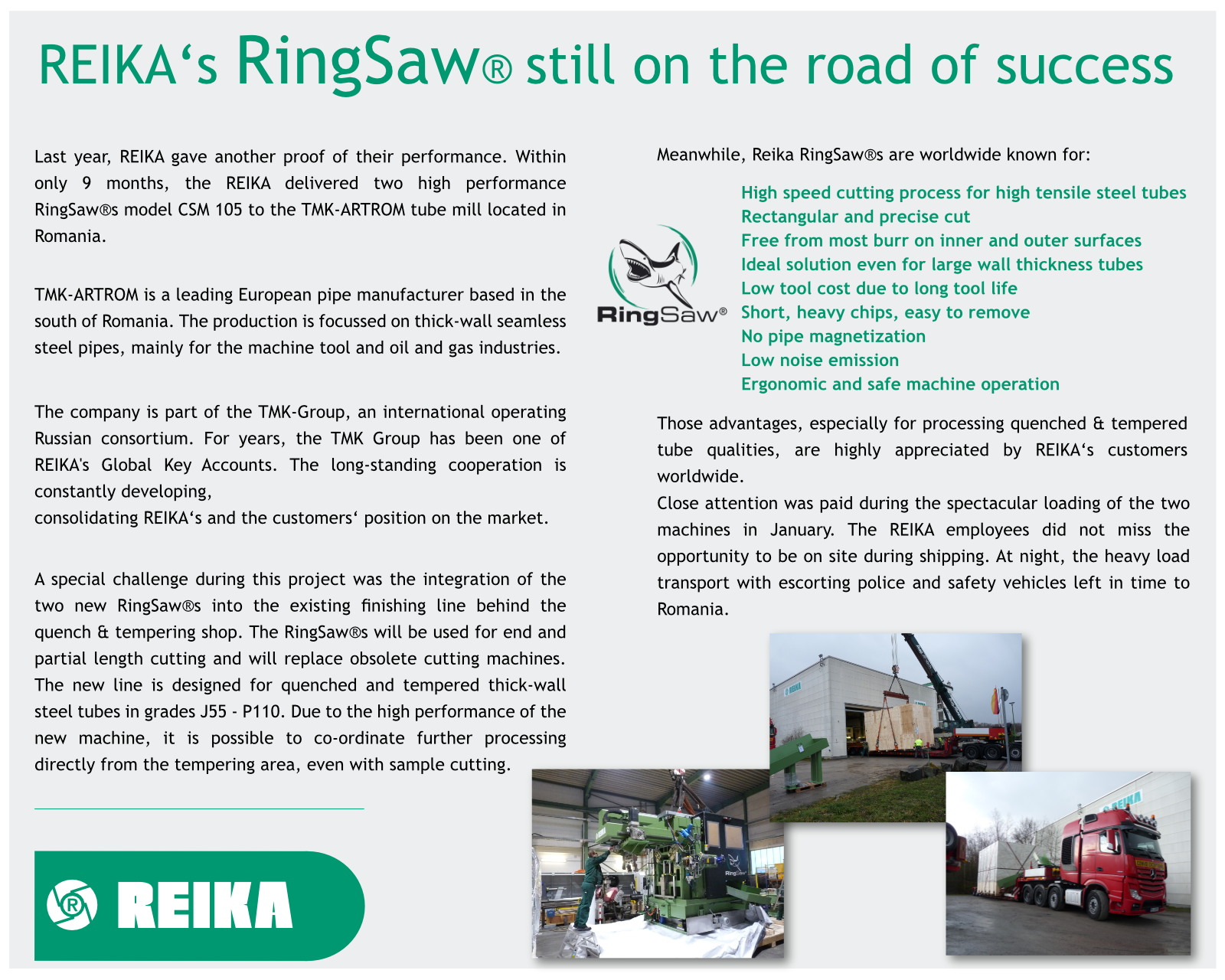 Last year, REIKA gave another proof of their performance. Within only 9 months, the REIKA delivered two high performance RingSaws® model CSM 105 to the ...